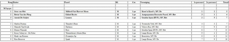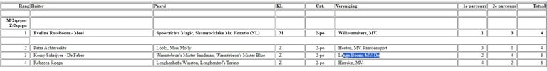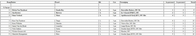 Jannie Van den Brink in de klasse L enkelspan paard 6de plek